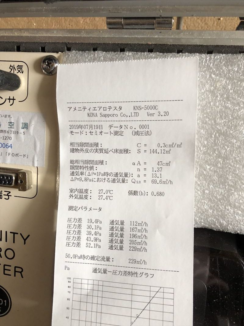 Nakahiro's BLOG 2019年10月05日 気密測定の結果です! R+house , シジマコンセプト , セミナー情報 , ブログ , 愛犬家住宅 , 頭のよい子が育つ家 , 高気密高断熱 今回も約C値0.3の結果を残すことができました。 紹介したいのは、現場途中の結果がC値0.326 完成時測定結果はC値0.346でした。 完成時はエアコンも取り付けた後での測定です。 現場工事中と完成時の2回測定はなかなかされていないと思いますし、完成時0.3は自慢できる数値と考えています。やはり、数字はウソをつきません!結果が良くて何よりでした。 Tweet